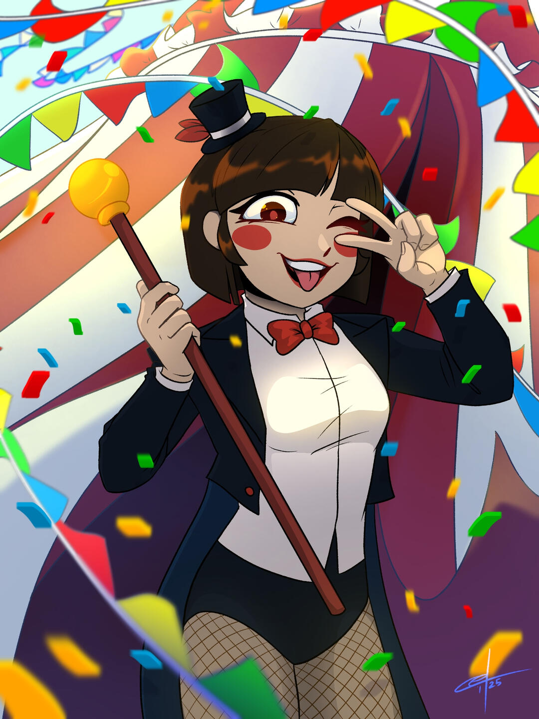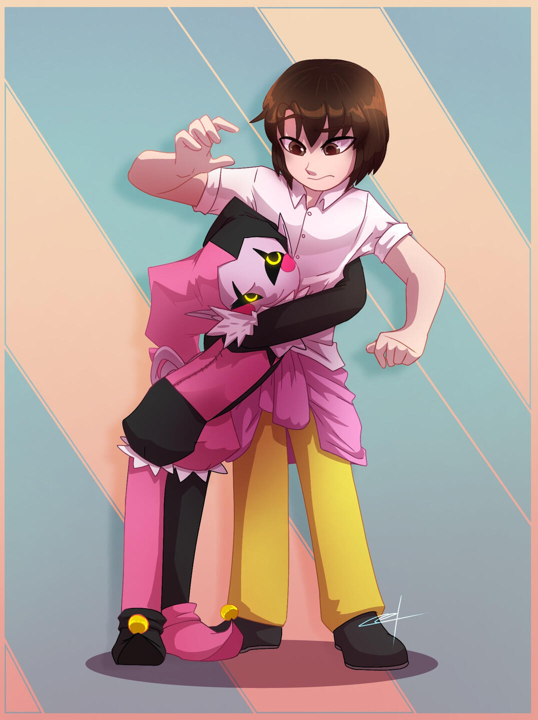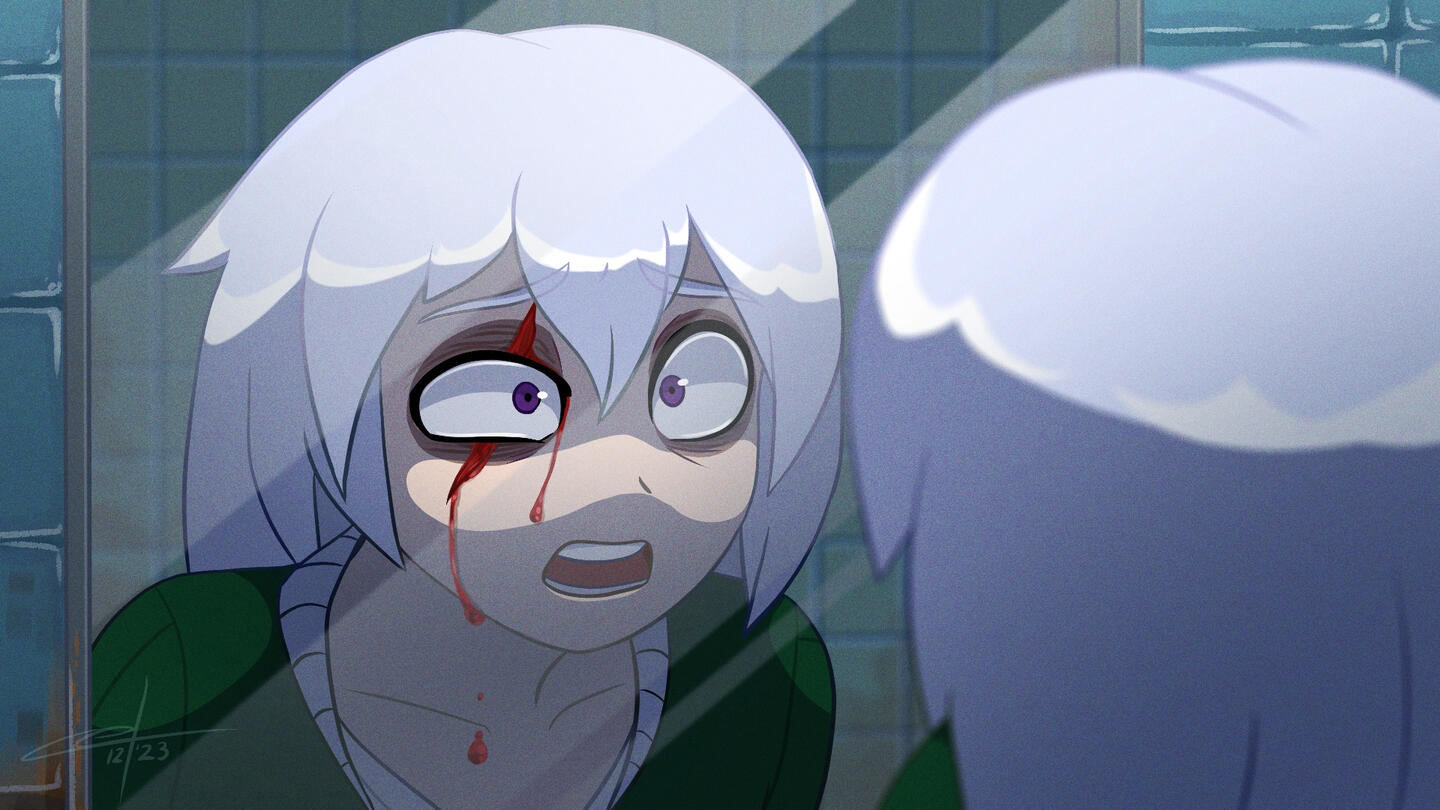 A detailed illustration with dynamic poses, camera angles, and original background.